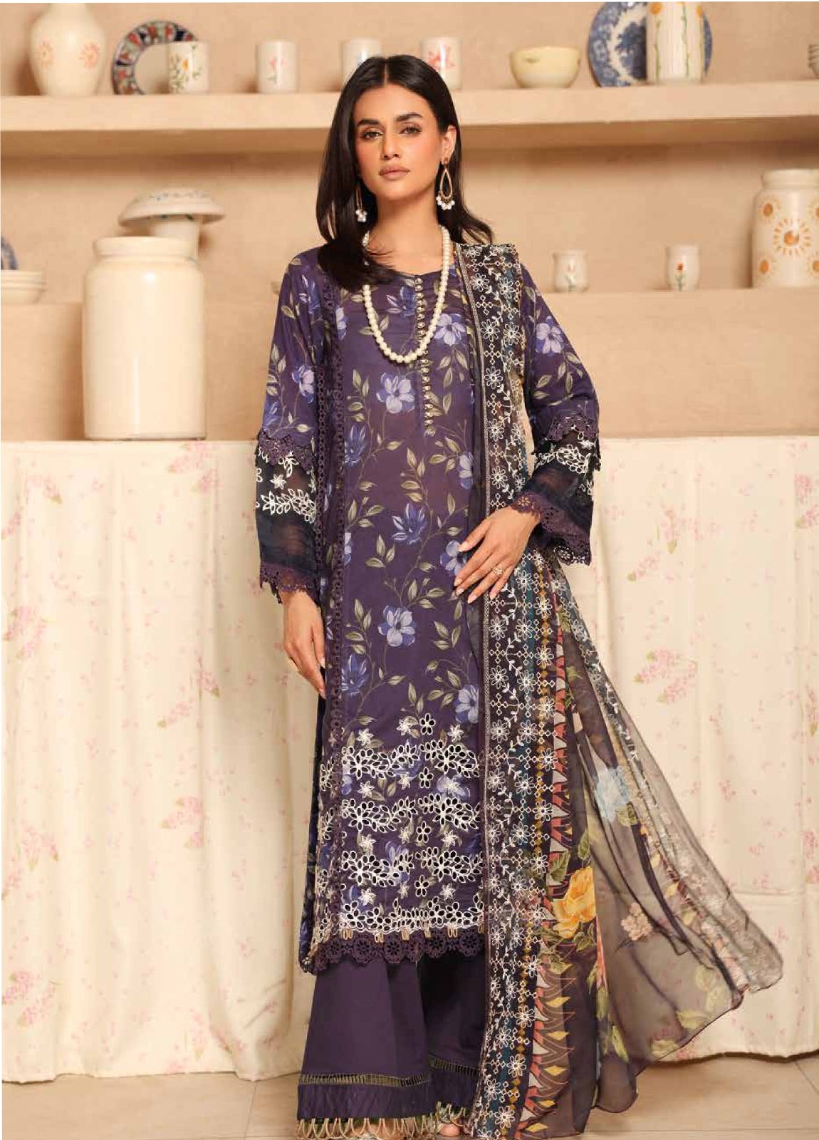 • Embroidered Chikankari + Printed Unstitched Lawn Shirt