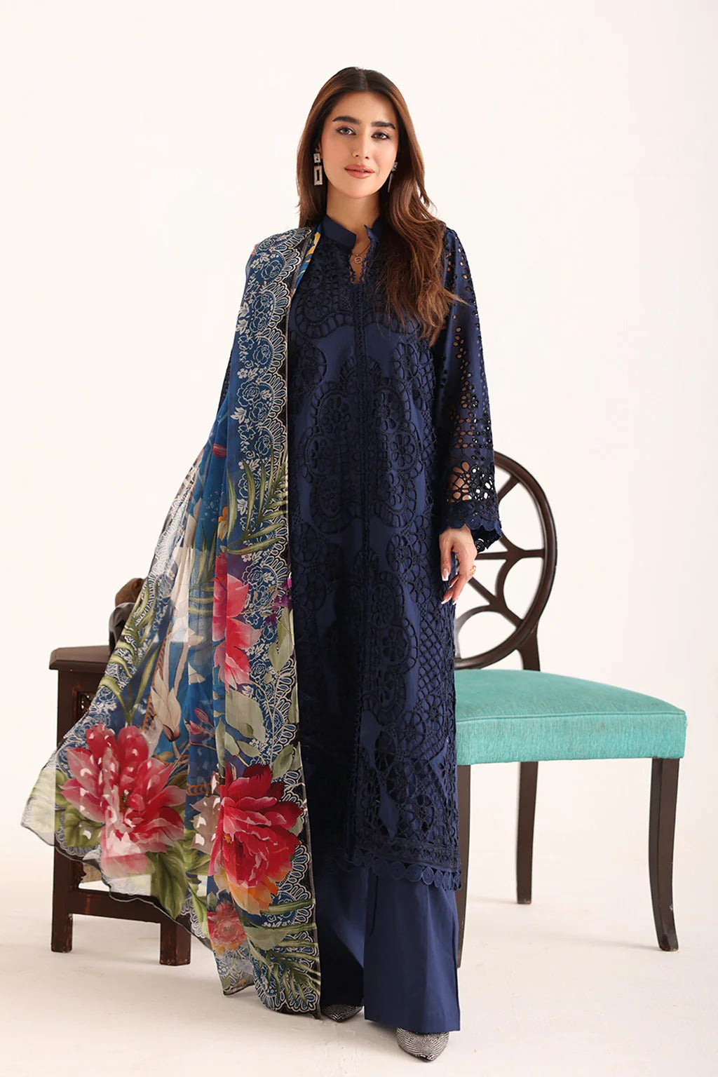 • Chikankari Lawn with Printed Bamber Chiffon Dupatta