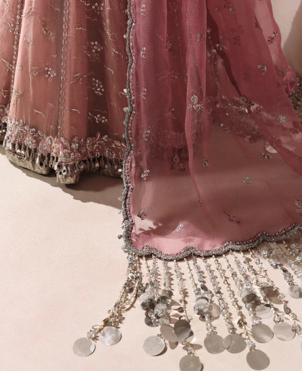 Front Bodice Left+Right Embellished (Organza) 1-PC Front Left Panels Embellished (Organza) 3-PC Front Right Panels Embellished (Organza) 3-PC Sleeves Embellished (Organza) 22" Back Bodice Embroidered (Organza) 1-PC Back Left Panels Embroidered (Organza) 3-PC Back Right Panels Embroidered (Organza) 3-PC Sleeves Border Embroidered (satin) 1-PC Dupatta Embroidered (Organza) 1-PC Dupatta Pallu Border Embroidered (Organza) 2-MTR Slip (Raw Silk) 1.5 MTR Trousers (Raw Silk) 4.5-MTR